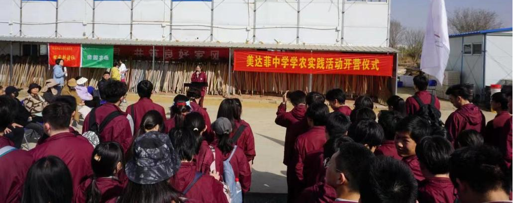 2024年3月29日上午,天津美达菲中学170余名高二年级的同学及12名老师走进贝壳田园,他们将在劳动实践基地开启一场别样的学农实践活动。开营仪式的现场,同学们身着整齐的校服,精神饱满,无不展现着心中对农耕的重视与好奇。