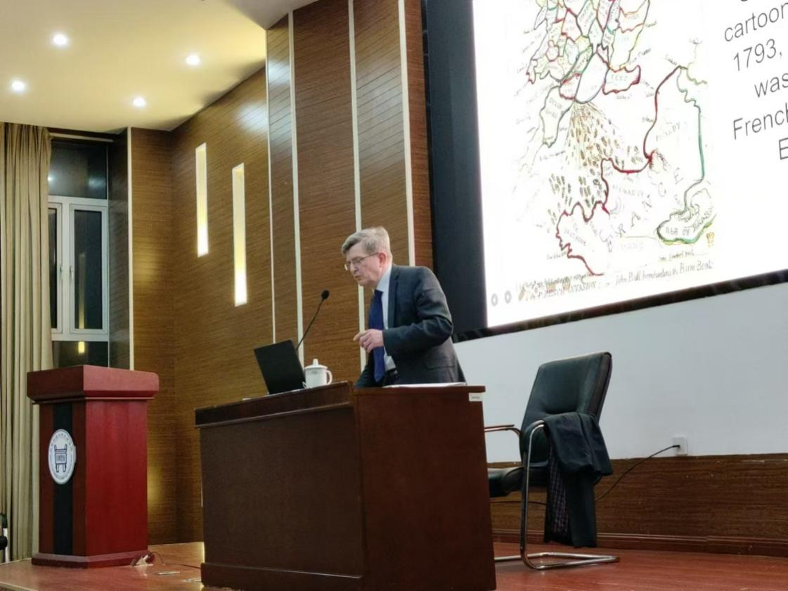 随后,外国语学院常务副院长滕建辉对Buck的讲座做了解读,指出Buck教授对英国历史的分析与阐述使我们更清晰地了解了英国丰富的人文历史和兴盛发达的思想文化基础,提升了对中英两国在各个领域的交流的认识,认识到跨文化交流的重要性。滕建辉还以英国外交大臣戴维﹒拉米次日来华访问为切入点,强调中英两国的稳定与发展会为两国人民带来更多福祉,为世界的和平与繁荣作出积极贡献。