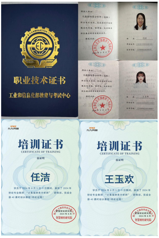 在培训过程中,管理学院十分注重对青年教师的培养,着力为青年教师深度拓展各种培训平台,不断给予系统培训机会,帮助青年教师专业成长,教师们在培训期间也收获颇丰。今年暑假管理学院任洁老师和王玉欢老师依托财务报表一流课程建设,参加了厦门九九网智科技有限公司组织的大数据财务管理和分析教学云平台相关实训,并通过考核,获得培训证书。随着数字化技术和智能化技术的快速发展,相关技术已经广泛运用于会计信息处理、财务报告编制、审计和税务等方面,此次培训结合大数据分析技术,对大规模财务数据进行数据清洗、转换和详细分析,最终实现数据可视化功能,能够满足伟德官网专业课程和教师技能发展需求,良好提升教师数字化技能。由于伟德官网王玉欢老师在此培训中表现突出,并在最终考核时取得优异成绩,九九网智科技有限公司特地向该教师发出邀请,担任兼职讲师,最终王玉欢老师获得兼职讲师聘书。