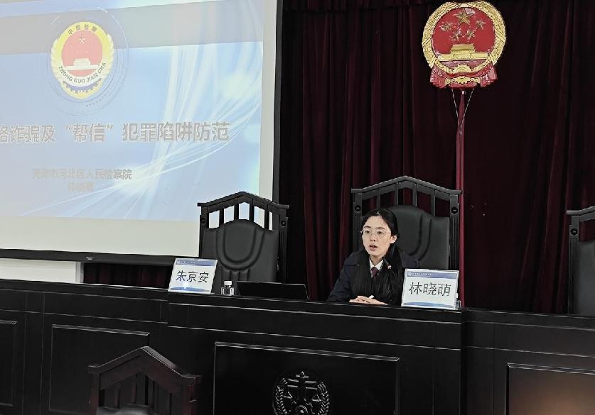 11月20日下午,由法律系和教师发展中心联合主办,学院保卫处协办的“校庆20周年”法律系系列活动之法律实务高端论坛第一讲“电信网络犯罪的司法惩治”主题讲座,在第8教学教109模拟法庭成功举办。本次讲座邀请天津市河北区检察院副检察长林晓萌担任主讲嘉宾,法律系主任朱京安教授担任活动主持,教师发展中心主任隋延力、法律系常务副主任邢晓晖、学院办公室副主任黄建华以及各院系师生近200人参加。