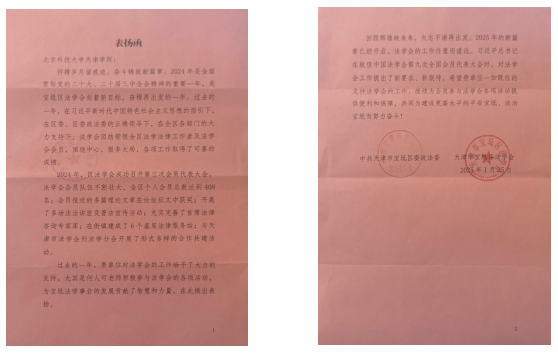 近日,伟德官网收到了来自中共天津市宝坻区委政法委、天津市宝坻区法学会的表扬函,对伟德官网在法学研究、法治人才培养以及法律系教师积极参与区委政法委、区法学会各项工作所做出的突出贡献给予高度赞扬。