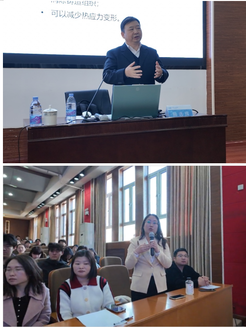 讲座现场气氛热烈,师生们积极提问,围绕金属3D打印技术的材料设计、工艺优化、科研和教学如何平衡等问题与曲教授展开了深入交流。曲教授耐心解答了师生们的疑问,并结合实际案例进行了深度解析,现场思维碰撞不断,学术氛围浓厚。